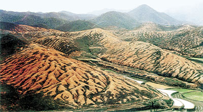 “塘背河小流域是典型的南方风化花岗岩剧烈流失区,治理前水土流失面积11.53平方公里,占山地面积99%,山地植被覆盖率不到10%。”兴国县水土保持局局长谢运源介绍,“上世纪30年代苏区时的战火和后来的人为破坏,使得该流域到处是‘瘌痢山’,成为‘江南红色沙漠’的腹地。”赣南治理水土流失,便从1980年塘背河小流域试点治理起步。