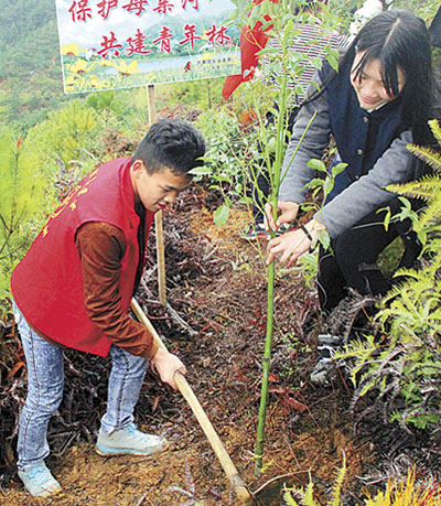 今年3月植树节前后,安远县群众在东江源森林公园植树。