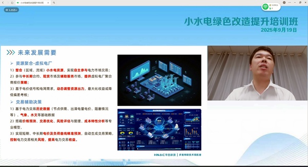 水利部农村电气化研究所信息技术研究室副主任胡长硕、湖南华自运维科技服务有限公司技术总监郑艳龙、福建省力得自动化设备有限公司副总经理陈开宇三位专家分别从小水电智能化、集约化、物业化改造技术要点及案例进行授课,深入剖析了行业数字化转型过程中的技术难点与创新解决方案,展示了智能化监控平台、流域集中调控模式和专业托管服务在提升电站效能方面的成功实践,为推动小水电现代化升级提供了可复制、可推广的技术路径和运营模式。